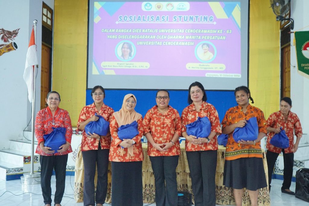 Dalam rangka memperingati bulan Dies Natalis ke-63 Universitas Cenderawasih (Uncen), Dharma Wanita Persatuan (DWP) Uncen menggelar kegiatan Sosialisasi Stunting bekerja sama dengan Badan Kependudukan dan Keluarga Berencana Nasional (BKKBN) Provinsi Papua. Kegiatan yang mengangkat judul“Pencegahan stunting melalui 1..000 hari kehidupan” ini berlangsung di Aula FKIP Uncen, Sabtu (18/10/2025).