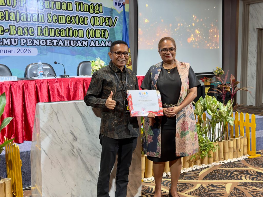 JAYAPURA – Merespons dinamika pendidikan tinggi yang terus berkembang, Fakultas Matematika dan Ilmu Pengetahuan Alam (FMIPA) Universitas Cenderawasih menyelenggarakan Lokakarya Indikator Kinerja Utama (IKU) Perguruan Tinggi dan Penyusunan Rencana Pembelajaran Semester (RPS) serta Portofolio Berbasis Outcome-Based Education (OBE). Kegiatan dilaksanakan di Grand Abe Hotel, Jayapura, pada Kamis (29/01/2026).