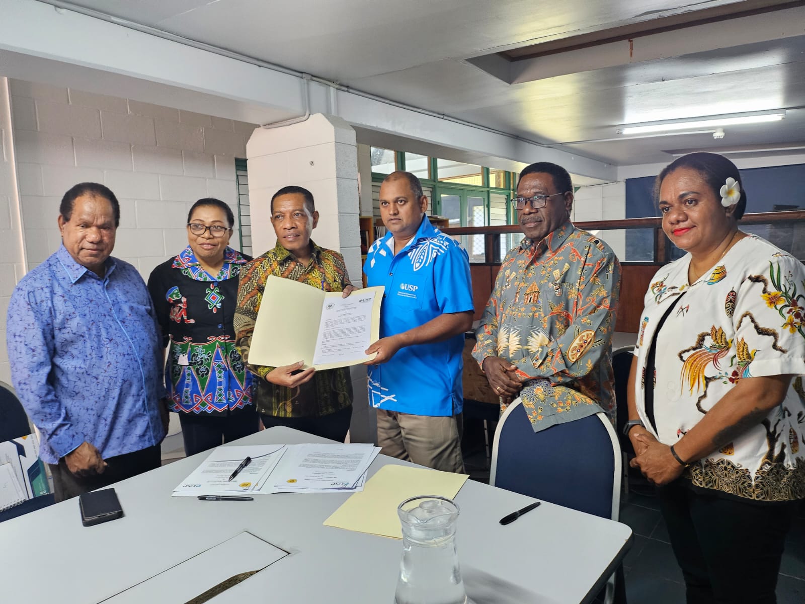 Penandatangan MoA dihadiri oleh Rektor Uncen, Ketua Senat Uncen, Dekan Fakultas Ekonomi dan Bisnis Uncen, Ketua Jurusan Akuntansi Fakultas Ekonomi dan Bisnis (FEB) Uncen, perwakilan dosen serta Penjabat Kepala Sekolah Akuntansi, Keuangan, dan Ekonomi University of the South Pacific.