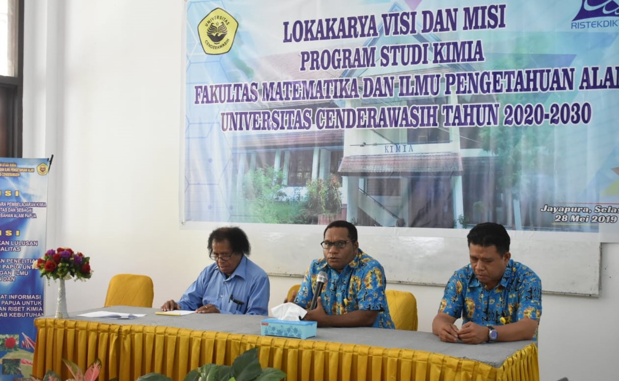 Dalam mempersiapkan lulusan yang berkualitas, Fakultas Matematika dan Ilmu Pengetahuan Alam Universitas Cenderawasih menyelenggarakan Lokakarya Penyusunan Visi dan Misi Program Studi Kimia Tahun 2020-2030. Lokakarya berlangsung di Lantai 2 Gedung Kimia F-MIPA, Kampus Waena, Selasa/28/5/2019.