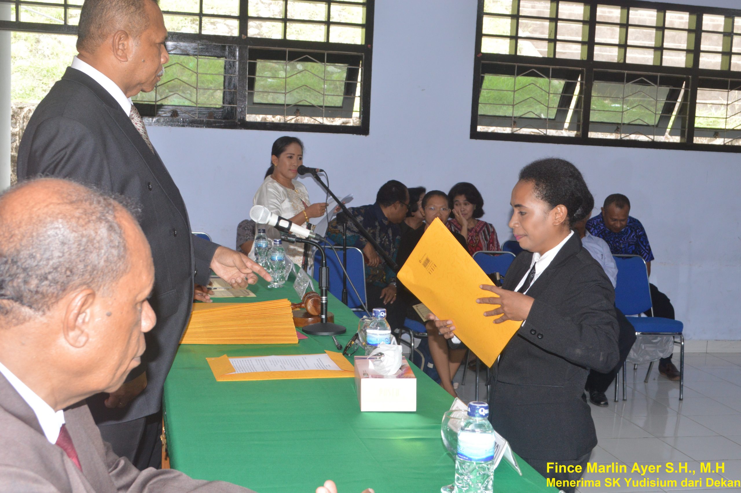 Satu nama dari lulusan Program Strata Dua merupakan mahasiswa lulusan terbaik asal Biak. Fince Marlin Ayer, S.H., M.H menyelesaikan studi Program Strata Dua (S2) di Fakultas Hukum dengan predikat Cum Laude .