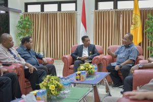 Senin, 17 Juli 2023. Mantan Gubernur Papua Barnabas Suebu mengunjungi Universitas Cenderawasih diterima oleh Ketua Senat, Rektor, Kepala Bapika, Dekan Fakultas Hukum dan Kabiro BAUK serta beberapa pejabat di ruang VIP Gedung Rektorat.