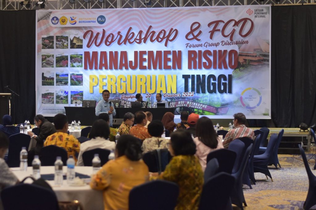Jayapura – Dalam rangka memperkuat tata kelola dan meningkatkan efektivitas organisasi, Universitas Cenderawasih (Uncen) menyelenggarakan Workshop dan Forum Group Discussion (FGD) Manajemen Risiko Perguruan Tinggi, bertempat di Hotel Suni Abepura pada Kamis (30/10/2025).