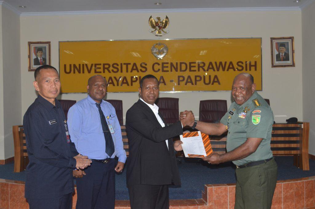 Senin,25 November 2019. Pimpinan Universitas Cenderawasih menyerahkan 26 mahasiswa yang tergabung dalam Resimen Mahasiswa kepada pihak Kodam XVII Cenderawasih untuk diberikan pelatihan dan pendidikan dasar militer. Penyerahan dilakukan di Ruang Rapat Pimpinan Gedung Rektorat.