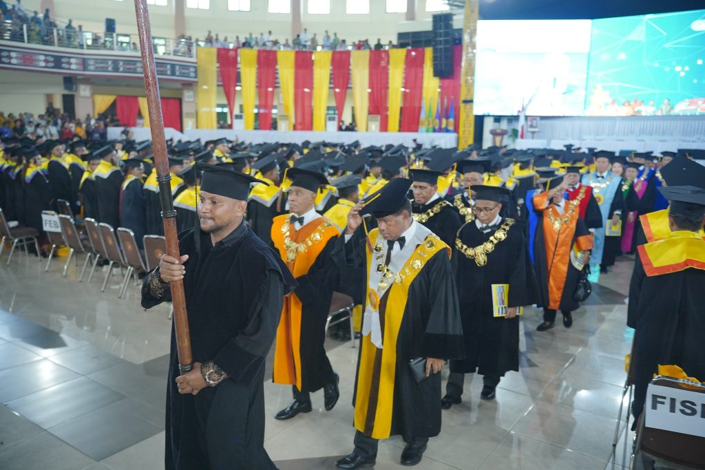Lebih lanjut, Prof. Kambuaya mendorong lulusan untuk tidak membatasi pandangan karir hanya pada sektor pemerintah atau menjadi pegawai negeri sipil (PNS). Ia menyoroti potensi kewirausahaan yang telah dibekali oleh sejumlah fakultas, seperti Ekonomi dan MIPA.