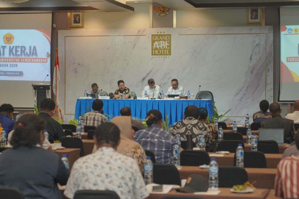 Fakultas Hukum Universitas Cenderawasih menggelar Rapat Kerja Tahun 2026 yang berlangsung di Grand Abe Hotel, Kota Jayapura, Selasa (3/2/2026). Kegiatan ini menjadi forum penting bagi pimpinan dan sivitas akademika Fakultas Hukum dalam melakukan evaluasi kinerja serta menyusun program dan kebijakan fakultas ke depan.