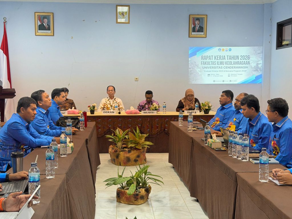 JAYAPURA – Fakultas Ilmu Keolahragaan (FIK) Universitas Cenderawasih (UNCEN) menyelenggarakan Rapat Kerja (Raker) Tahun 2026 yang bertempat di Ruang Rapat Gedung Terpadu A FIK, pada Selasa (3/2/2026). Kegiatan strategis ini mengusung tema “Evaluasi Kinerja 2025 & Rencana Program 2026”.