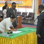 Rektor Universitas Cenderawasih, Dr. Ir. Apolo Safanpo, ST, MT menjadi pendamping Guru Besar dalam upacara pengukuhan Guru Besar Menteri Hukum dan Hak Asasi Manusia (HAM) RI Prof. Dr. Yasona Laoly, SH, M.Hum di Sekolah Tinggi ilmu Kepolisian Lembaga Pendidikan dan Pelatihan Polri (STIK-PTIK) Jakarta.