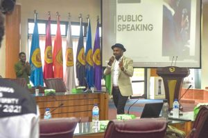 Pelatihan Public Speaking selanjutnya diberikan oleh Piter Ginuny, M.CommDev, CPS. yang mempelajari ilmu komunikasi ke negeri Australia dan terus mengembangkan potensi soft skillnya dengan basic ilmu yang dimiliki sehingga diakui dengan sertifikat sebagai seorang public speaker. Pria yang akrab disapa dengan Pice membimbing peserta untuk dapat memberanikan diri dalam berbicara, memberikan pendapat dengan memahami masalah atau sebuah tema kegiatan yang lagi dibahas.