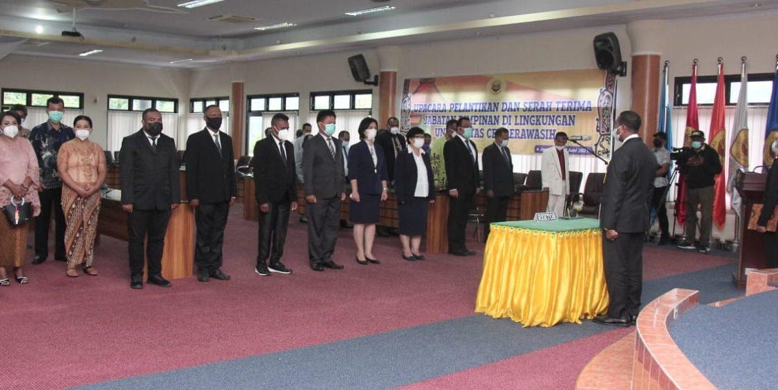 Tujuh pejabat di lingkungkunan Universitas Cenderawasih dilantik oleh rektor uncen. Pelantikan berlangsung di ruang rapat pimpinan gedung rektorat. Pelantikan disaksikan oleh Pembantu Rekor II, Kepala BAUK, pimpinan unit, koordinataor dan sub koordinator di lingkungan rektorat. Kamis,10/6/2021.