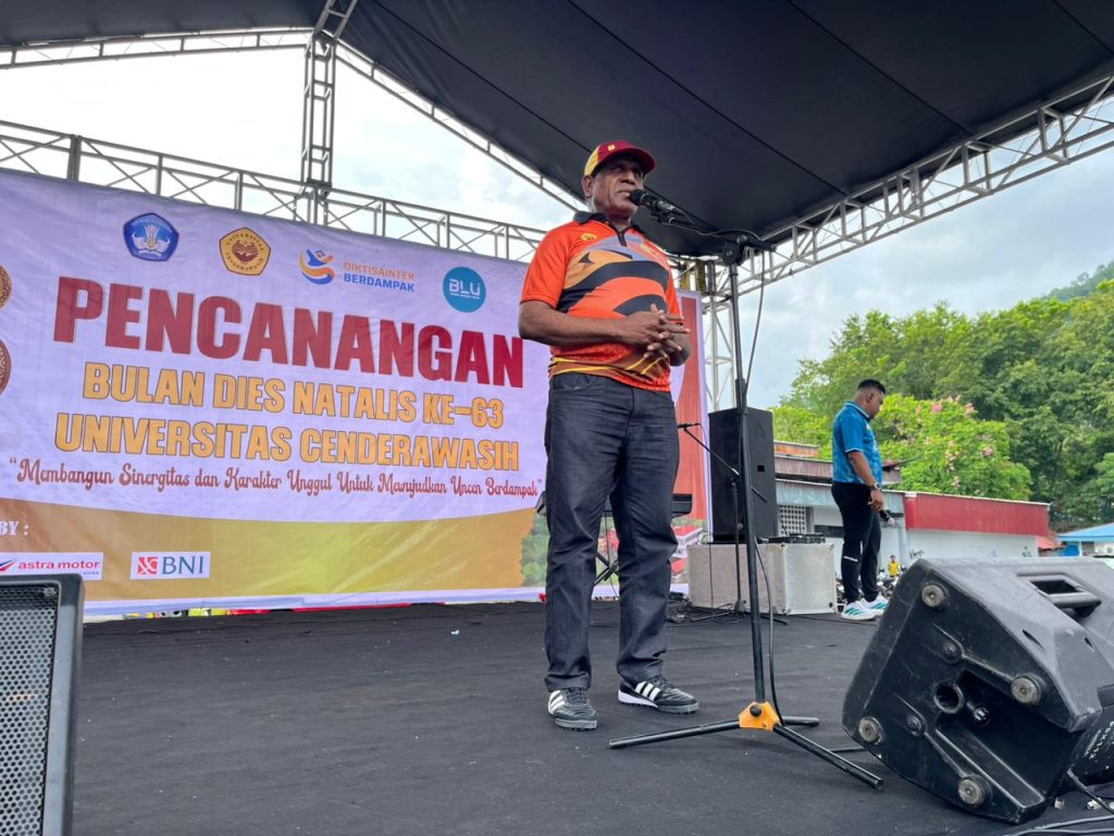 Kegiatan pencanangan dibuka secara resmi oleh Wakil Rektor Bidang Kemahasiswaan, Dr. Septinus Saa, S.Sos., M.Si. Dalam sambutannya, beliau menyampaikan bahwa momentum Dies Natalis menjadi kesempatan bagi seluruh sivitas akademika untuk merefleksikan perjalanan dan kontribusi Universitas Cenderawasih selama 63 tahun berdiri.
