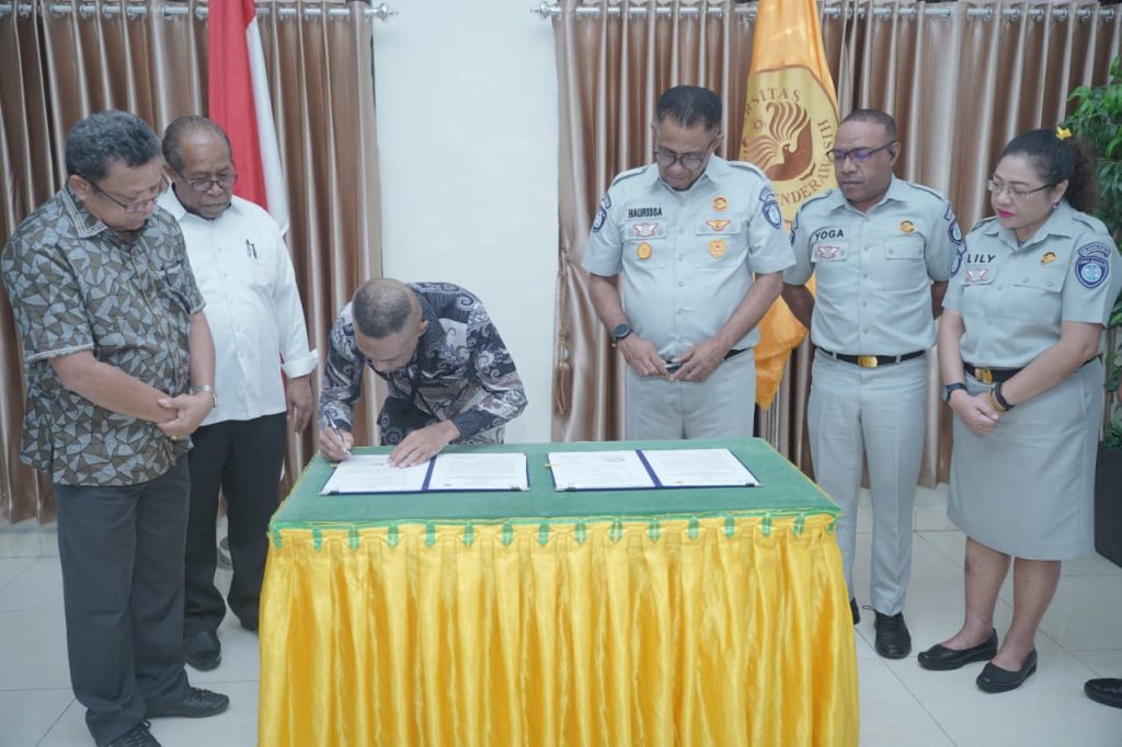 Universitas Cenderawasih memperpanjang kerja sama strategis dengan PT Jasa Raharja melalui penandatanganan Nota Kesepahaman (Memorandum of Understanding) yang digelar pada, Selasa (6/1/2026) di Ruang Rapat Rektor, Gedung Rektorat Uncen. Kesepakatan ini mencakup berbagai bidang seperti peningkatan keselamatan lalu lintas, penguatan sektor pendidikan dan penelitian, hingga pengabdian kepada masyarakat. Kegiatan ini menegaskan komitmen kedua pihak dalam meningkatkan keselamatan transportasi, pendidikan, dan pemberdayaan masyarakat.