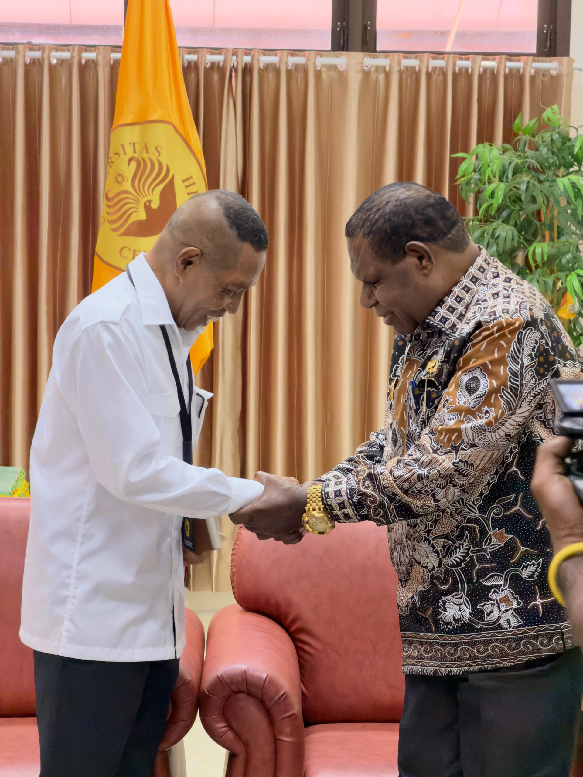 Turut hadir mendampingi Rektor, yaitu Wakil Rektor Bidang Akademik, Dr. Dirk Y.P. Runtuboy, S.Pd., M.Kes., Wakil Rektor III Bidang Kemahasiswaan Dr. Septinus Saa, S.Sos., M.Sos., Direktur Unit Usaha dan Pemanfaatan Aset (U2PA), Dr. Ferdinand Risamasu, S.E., M.Sc.Agr, Plt. Kepala Biro BAPSIK Marthinus Marvin Itaar, S.H., M.AP, Kepala Biro Administrasi Akademik dan Kemahasiswaan (BAAK), Chris Jan Rumsano, S.Pd., M.Si. Dekan Fakultas Kedokteran, dr. Inneke Viviane Sumolang, Sp.DVE., FINSDV., FAADV , dan Pembantu Dekan II Fakultas Kedokteran dr. Astrina Rosaria Indah Sidabutar, M.Kes,