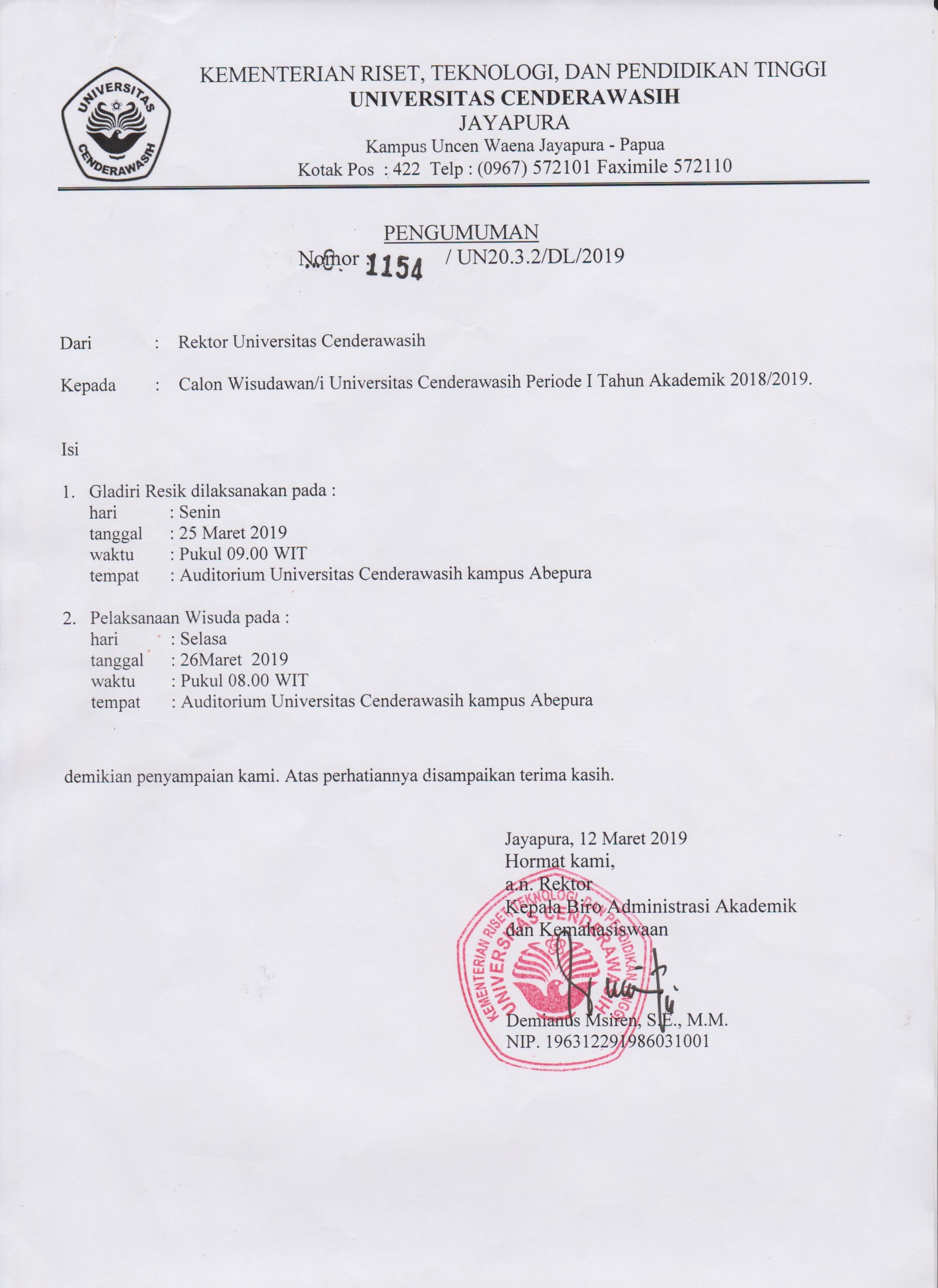 WISUDA UNIVERSITAS CENDERAWASIH Periode I Tahun Akademik 2018/2019