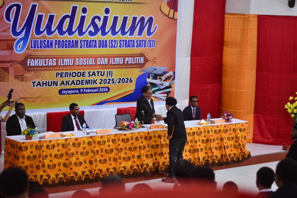 Fakultas Ilmu Sosial dan Ilmu Politik Universitas Cenderawasih melaksanakan Yudisium Periode I Tahun 2026 pada Senin, 9 Februari 2026, bertempat di Aula FISIP Uncen. Kegiatan ini diikuti oleh 44 mahasiswa dari jenjang Strata Satu (S1) dan Strata Dua (S2) yang telah dinyatakan lulus dan memenuhi seluruh persyaratan akademik serta administrasi.